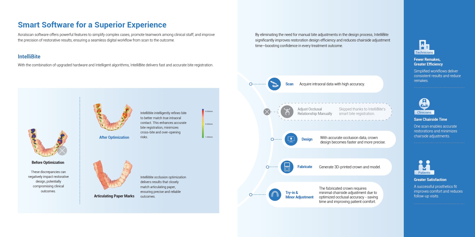 After using the medit i500 scanner at an office as an employee, I purchased it from Cad-ray,com specifically because of their good reviews and their large, concise training library of videos. I've used CEREC as an instructor at a dental school and bo... read moreAfter using the medit i500 scanner at an office as an employee, I purchased it from Cad-ray,com specifically because of their good reviews and their large, concise training library of videos. I've used CEREC as an instructor at a dental school and bought a used Planscan, Planmill for my private office. Both were hard to learn and the fees and cost associated with training were a bitter pill to swallow after the costs to purchase. The ease of seating restoration was instant. The scanning learning curve is quick. I have easily added occlusal guard scanning, and implant scanning and will be trying a digital denture soon.